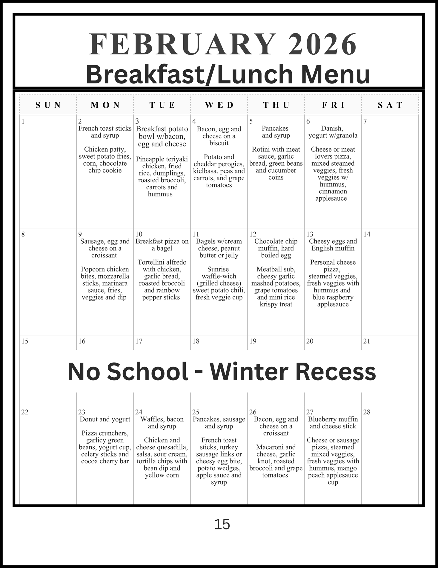 BREAKFAST AND LUNCH PROGRAM